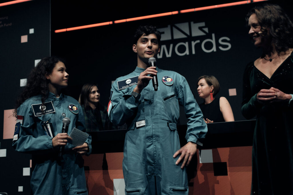Juliette Pertuy, Bo Byloos, Maia Haas, Selima Malsagova & Maud Marocki (Luxembourg Space Agency), received the Outstanding Promotion of Science to the Public Award for their outreach activity “Astronaut For a Day Luxembourg”.