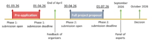 - Following this initial assessment, selected consortia will be invited to submit a Full Project Proposal between 30 April and 1 July 2026 at 14:00. The proposals will then be evaluated by an independent expert panel on scientific, technical and economic criteria, and funding decisions will be communicated by October 2026.